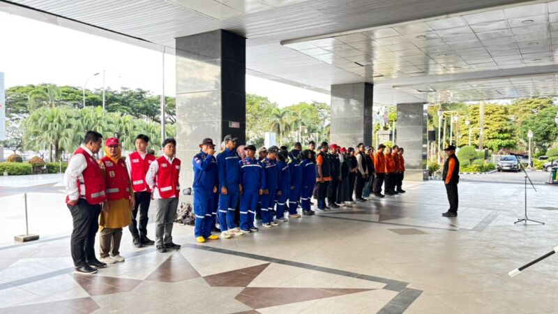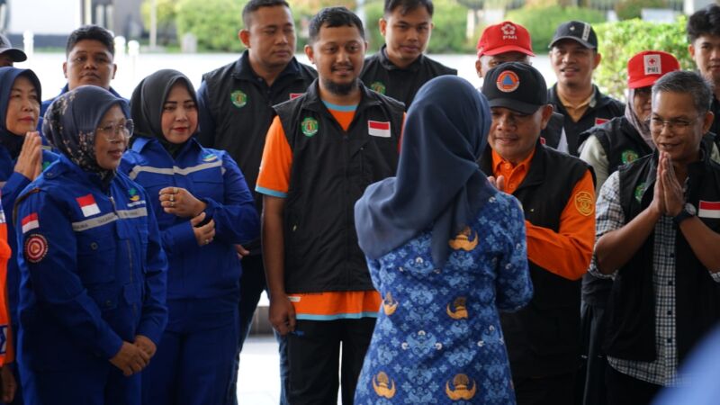 Sekda Kaltim Sri Wahyuni menemui para relawan yang diberangkatkan ke Aceh Tamiang. (HO-BPBD Kaltim)