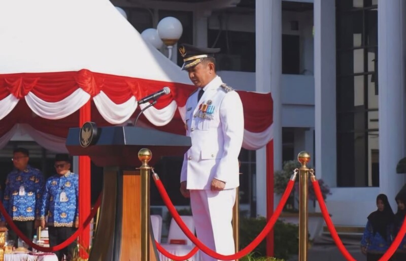 Rahmad Mas’ud saat memimpin peringatan Hari Otonomi Daerah ke-30 di Balai Kota Balikpapan, Senin 27 April 2026. (niaga.asia/Heri)