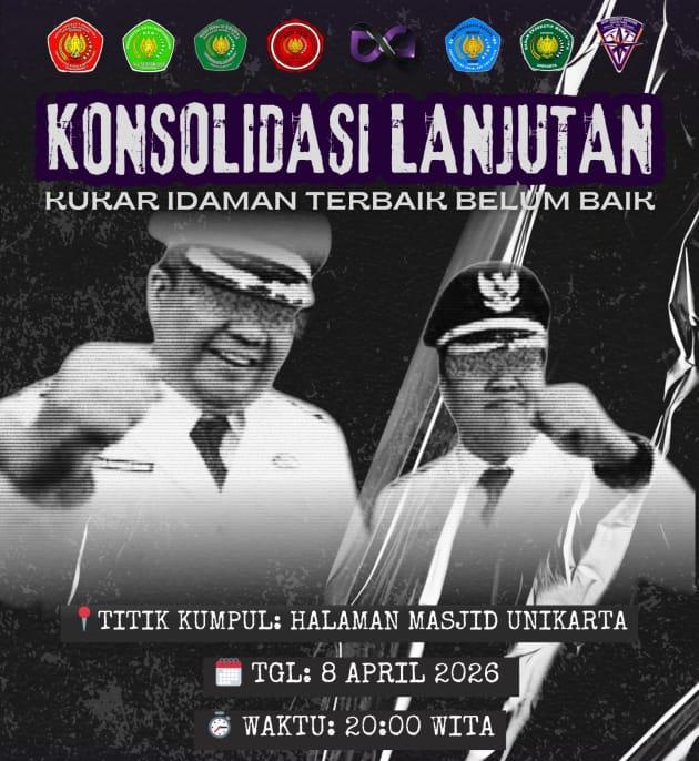 Teranyar, dinamika yang berkembang kian mengarah pada penguatan gerakan. Hal ini terlihat dari flyer yang tersebar luas, yang mengajak mahasiswa mengikuti konsolidasi lanjutan pada Rabu malam (8/4/2026) pukul 20.00 WITA di halaman Masjid Unikarta, Tenggarong.