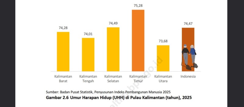 Menurut BPS Kaltim, pada indikator umur harapan hidup (UHH) saat lahir, dibandingkan dengan empat provinsi lainnya di Kalimantan, umur harapan hidup Kalimantan Timur pada tahun 2025 masih lebih tinggi dibandingkan dengan keempat provinsi lainnya di pulau Kalimantan.