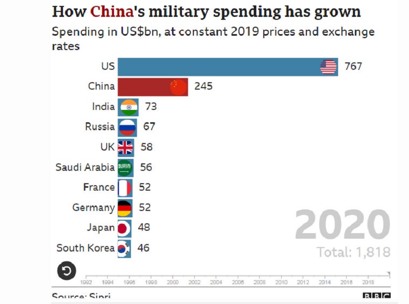 Dipercaya secara luas, China saat ini menghabiskan lebih banyak untuk angkatan bersenjatanya daripada negara mana pun di dunia, kecuali Amerika Serikat.