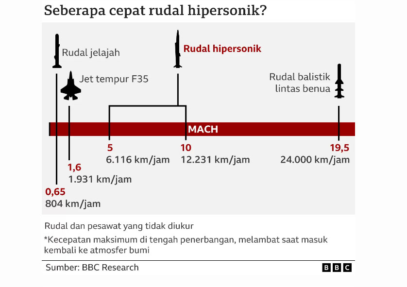 Rudal hipersonik bergerak lebih dari lima kali kecepatan suara.