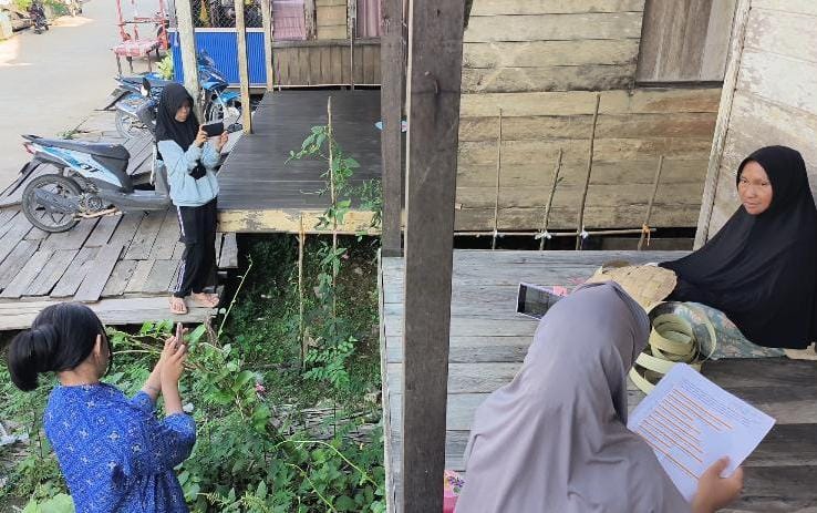 Tiga pelajar SMPN 1 Kenohan saat melakukan proses pengambilan gambar untuk film dokumenter “Sahung dari Pandan Berduri”. (Niaga.Asia/Lydia Apriliani)