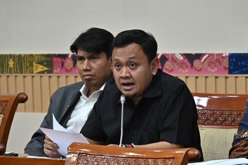 Anggota Komisi III DPR RI, Bimantoro Wiyono, dalam Rapat Dengar Pendapat (RDP) dan Rapat Dengar Pendapat Umum (RDPU) bersama jajaran Kepolisian Daerah Sulawesi Tenggara (Polda Sultra), kuasa hukum korban, serta kuasa hukum pihak travel di Gedung Nusantara II, Senayan, Jakarta, Senin (2/3/2026). Foto: Alma/Karisma