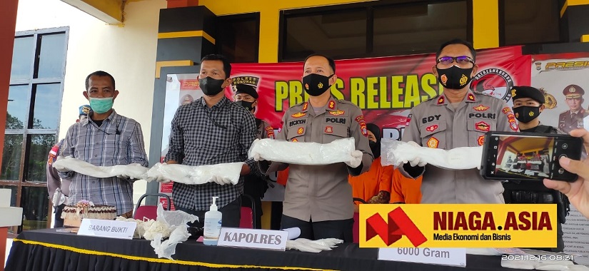 Kapolres Nunukan AKBP Ricky Hadiyanto menyampaikan hasil tangkapan sabu 6 kilogram. (foto Budi Anshori/Niaga.Asia)