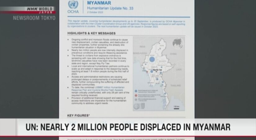 Dalam laporan terbarunya yang dirilis pada Senin 2 Oktober 2023, Kantor Koordinasi Urusan Kemanusiaan (OCHA) PBB menyatakan hampir 2 juta orang telah menjadi pengungsi internal di seluruh Myanmar.