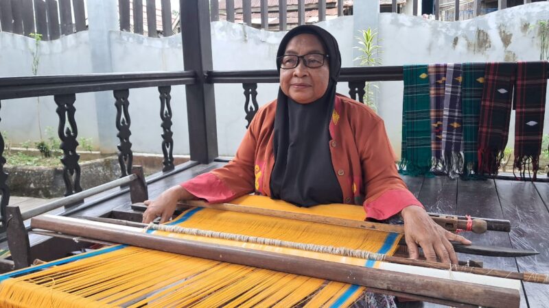 Salah satu perajin tenun di Kampung Tenun, Samarinda. (niaga.asia/Nur Asih Damayanti)