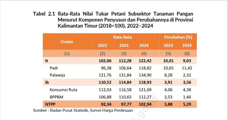 BPS Kaltim melaporkan, indikator makro seperti NTPP Kaltim menunjukkan tren positif dan telah melampaui ambang batas daya tukar (>100), dengan capaian 102,94 pada tahun 2024. Secara teoritis, hal ini menandakan adanya peningkatan daya beli riil petani secara agregat.