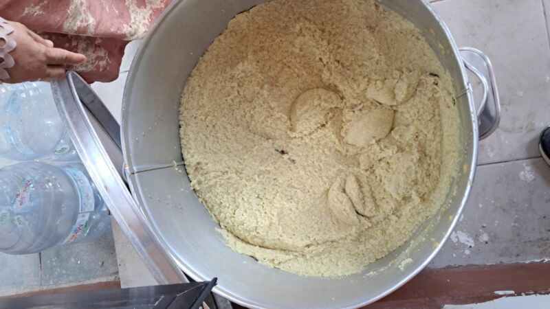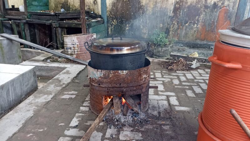 “Dulu awalnya hanya 3 kilo beras, sekarang sampai 50 kilo beras setiap harinya. Itu setara dengan dua karung beras,” kata Diana —sapaan akrab Mardiana– ditemui di sela kesibukannya mengaduk bumbu, Sabtu 21 Februari 2026.