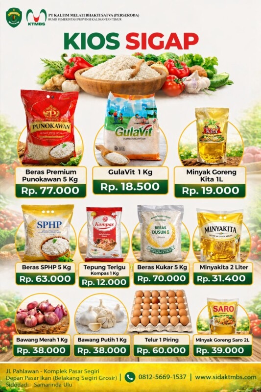 “Program ini merupakan tindak lanjut dari penugasan Pemerintah Provinsi Kalimantan Timur kepada PT KTMBS untuk menjaga stabilitas harga dan ketersediaan bahan pangan,” kata Dirut PT Kaltim Melati Bhakti Satya, Aji Mohammad Abidharta Wardana Hakim, Senin (13/4/2026).