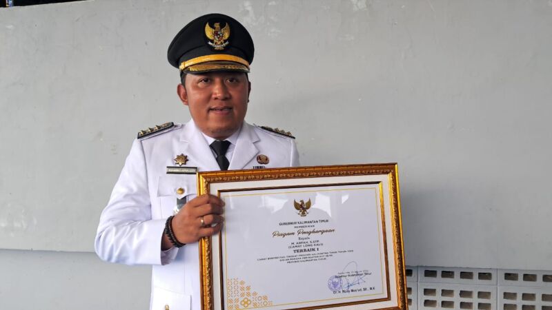 SAMARINDA.NIAGA.ASIA — Peringatan Hari Ulang Tahun ke-69 Pemprov Kalimantan Timur (Kaltim) menjadi momen bahagia bagi Camat Long Kali Kabupaten Paser, Muhammad Arfah. Dia membawa pulang emas 20 gram dari Pemprov Kaltim, usai ditetapkan sebagai Camat terbaik pertama se-Kaltim 2026, Jumat 9 Januari 2026 kemarin.