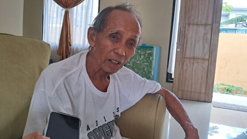 Saat itu, sorot mata tertuju pada seorang pria Lansia berkaos putih sambil duduk termenung dengan tatapan kosong di atas sofa. Dia adalah Muhammad Amin, berusia 75 tahun.