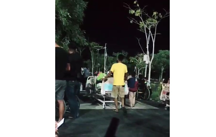 Pasien RSUD Jusuf SK Tarakan meninggalkan ruang rawat inap saat gempa dengan magnitudo 4,8 mengguncang wilayah Tarakan, Kalimantan Utara (Kaltara), Rabu (5/11/2025) pukul 17.37 WIB. (Foto Medsos)