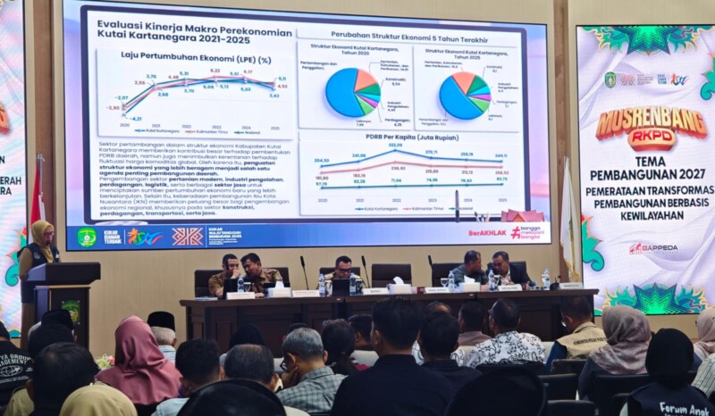 TENGGARONG.NIAGA.ASIA – Musrenbang RKPD Kutai Kartanegara (Kukar) Tahun 2027 yang berlangsung selama 6 jam, dari pukul 09.00 – 15.00 WITA, mengupas satu isu krusial yang kini menjadi perhatian bersama, yaitu pertumbuhan ekonomi Kukar masih sangat bergantung pada sektor pertambangan.