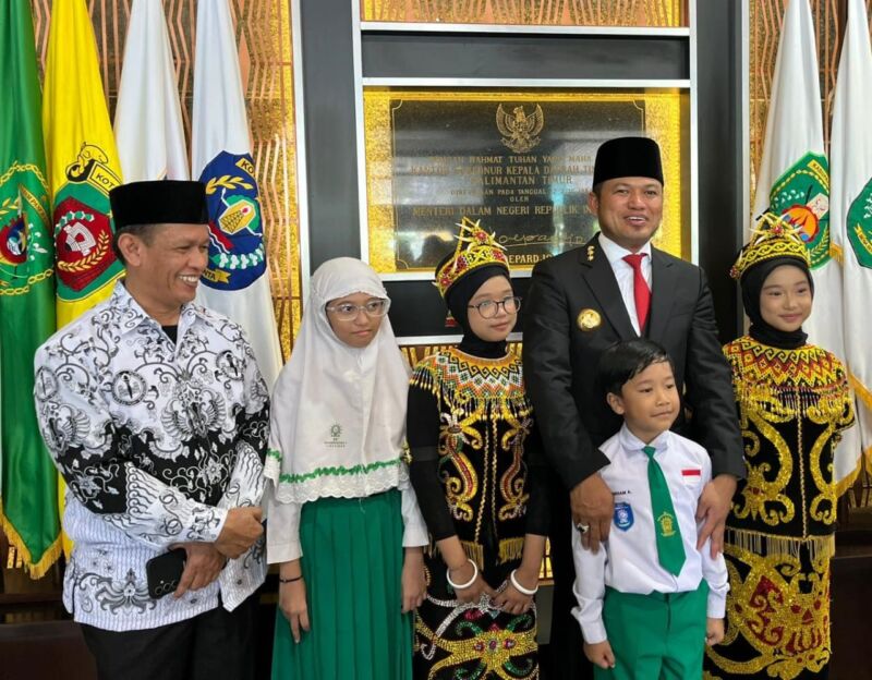 Gubernur Rudy Mas’ud dan Plt Kepala Disdikbud Kaltim Armin bersama dengan para pelajar di Samarinda. (Niaga.Asia/Lydia Apriliani)