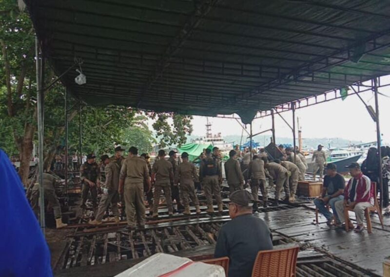 SAMARINDA.NIAGA.ASIA — Pemerintah Kota (Pemkot) Samarinda melalui jajaran Satpol PP membongkar lapak buah dan dermaga kapal di kawasan Jalan Yos Sudarso, Samarinda, Rabu 3 Juli 2024. Sekitar 80 pedagang kaki lima (PKL) yang berjualan di kawasan itu harus direlokasikan ke kawasan Kelurahan Harapan Baru.