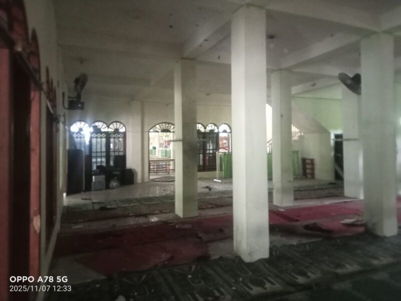 Petugas gabungan dari damkar, TNI AL, dan kepolisian masih berjaga di lokasi untuk memastikan tidak ada risiko lanjutan. Sementara itu, pihak sekolah juga telah mengevakuasi siswa dan menutup akses menuju area masjid sampai proses investigasi selesai.