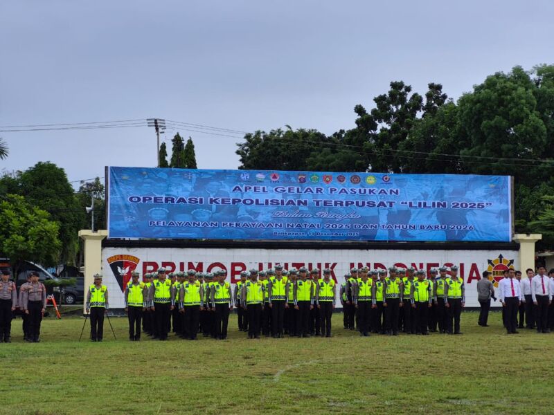 BALIKPAPAN.NIAGA.ASIA – Menjelang perayaan Natal 2025 dan Tahun Baru 2026, Polda Kalimantan Timur memastikan kesiapan penuh seluruh unsur pengamanan melalui apel Kesiapan Operasi Lilin Mahakam 2025., di Lapangan M. Yasin Satbrimob Polda Kaltim, Jumat 19 Desember 2025.