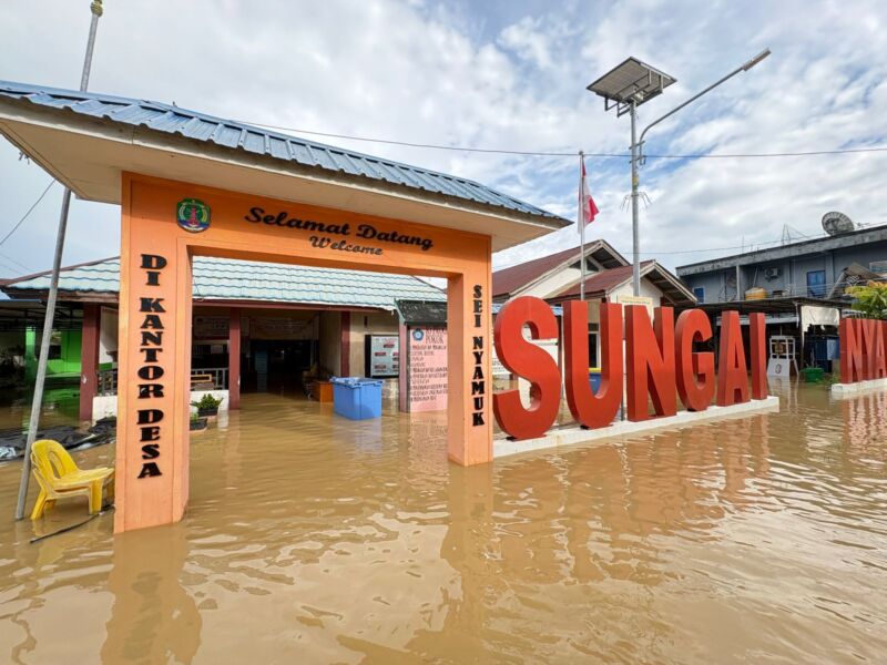 Selain menggenangi rumah-rumah warga, banjir merangsek masuk ke kantor Desa Sei Nyamuk, rumah ibadah, 5 gedung sekolah, 1 pondok pesantren dan bangunan Puskesmas Sei Nyamuk.