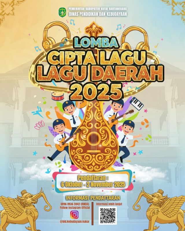 TENGGARONG.NIAGA.ASIA – Seluruh pelajar jenjang SMP di Kabupaten Kutai Kartanegara dipersilahkan berpartisipasi mengikuti Lomba Cipta Lagu Daerah Tahun 2025, sebuah ajang kreatif yang membuka ruang bagi generasi muda untuk menyalurkan bakat, ide, dan rasa cintanya terhadap budaya lokal melalui karya musik.