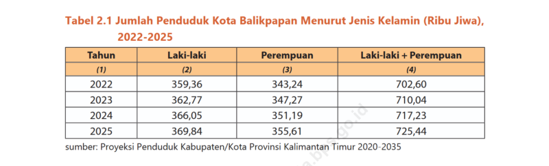 BALIKPAPAN.NIAGA.ASIA – Berdasarkan data proyeksi penduduk, jumlah penduduk Kota Balikpapan pada tahun 2025 sebanyak 725,440 jiwa, atau bertambah 8.210 jiwa (1,14%) dibandingkan jumlah penduduk pada tahun 2024 yang tercatat 717.230 jiwa. Bila dibandingkan dengan jumlah penduduk Balikpapan tahun 2022 sebanyak 702.600 jiwa, maka dalam tiga tahun terakhir, penduduk Balikpapan bertambah 22.840 jiwa atau 3,25%.