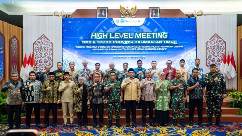 High Level Meeting dibuka secara daring oleh Gubernur Kalimantan Timur, Dr. H. Rudy Mas’ud, S.E., M.E. dan dihadiri secara luring oleh Wakil Gubernur Kalimantan Timur, Ir. H. Seno Aji, M.Si, selaku Ketua TPID Provinsi Kaltim.