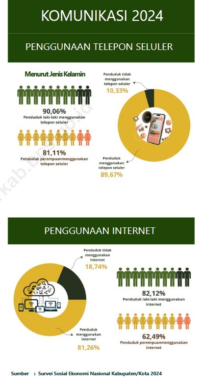 “Berdasarkan data Susenas pada tahun 2024 sebanyak 89,67 persen penduduk usia 5 tahun ke atas menggunakan telepon seluler (HP)/komputer/laptop dalam 3 bulan terakhir. Persentase ini lebih besar dari tahun 2023 yang sebesar 85,87 persen,” kata Mursinah.
