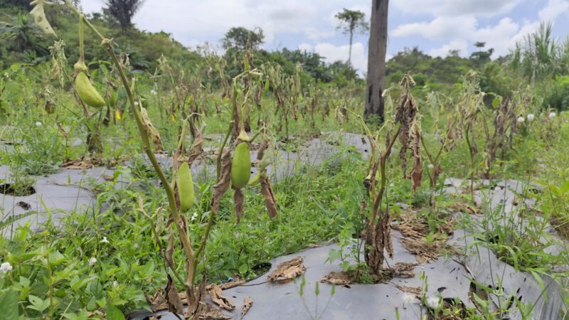 “Saya kan nanem terong, kacang, buncis dan tomat. Nah beberapa bulan ini gagal panen, kacang saya mati semua. Tanaman pada layu,” ujarnya.