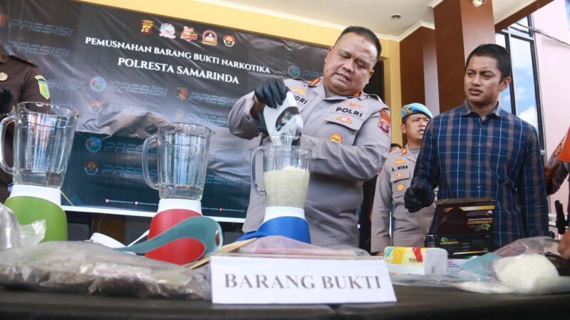 Pemusnahan yang dipimpin langsung Kapolresta Samarinda Kombes Pol Hendri Umar di lobi markas Polresta Samarinda, Kamis 30 April 2026 itu menunjukkan komitmen jajaran Polri di Samarinda, dalam memberantas peredaran gelap narkotika.