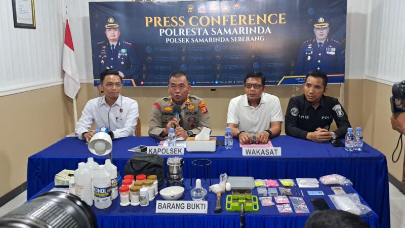 “Pelaku RR (Roy Ramadhani) meracik bahan baku obat sakit kepala dicampur sabu-sabu kemudian dicetak menggunakan alat khusus yang dibeli secara daring,” kata Kapolsek Samarinda Seberang, AKP Baihaki, saat konferensi pers di kantornya, Senin 19 Januari 2026.