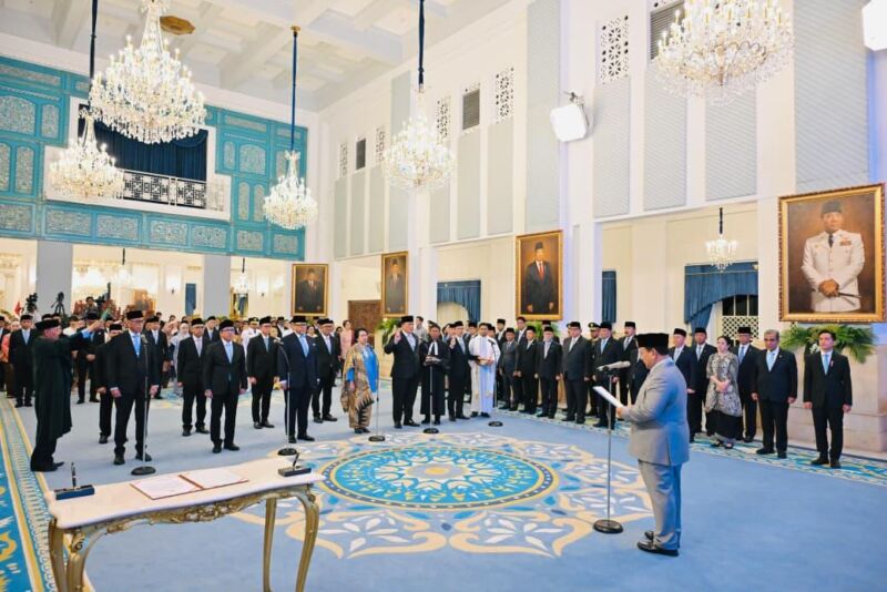 Dalam prosesi yang berlangsung khidmat, Presiden Prabowo memimpin langsung pengambilan sumpah jabatan para Dubes LBBP dan Wakil Dubes RI. Dengan suara tegas dan penuh wibawa, Presiden Prabowo mendiktekan naskah sumpah jabatan yang diikuti para dubes secara serentak.