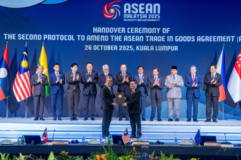 “Naskah Perjanjian ATIGA Upgrade telah ditandatangani Mendag di hari sebelumnya, Sabtu, (25/10/2025). Penandatanganan juga telah dilakukan oleh Brunei Darussalam, Malaysia, Filipina, Singapura, dan Thailand. Kamboja dan Laos menandatangani secara ad referendum. Adapun Myanmar dan Vietnam dijadwalkan melakukan penandatanganan pada November 2025,” ujarnya.
