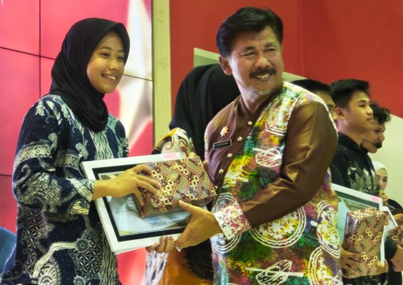 Salah satu peserta Binlat Bintang Pengabdian Kukar menerima penghargaan sebagai Peserta Terbaik atas dedikasi, disiplin, dan capaian selama masa pembinaan. (Niaga.Asia/Lydia Apriliani)