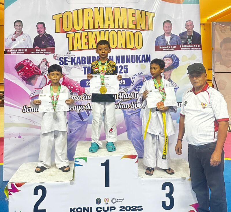 NUNUKAN.NIAGA.ASIA – Atlet Pracadet dan Cadet asal Dojang Unggul Taekwondo Academy Nunukan mendominasi Turnamen Taekwondo KONI Cup 2025, dengan meraih 34 medali dari tiga kelas yang dipertandingan.