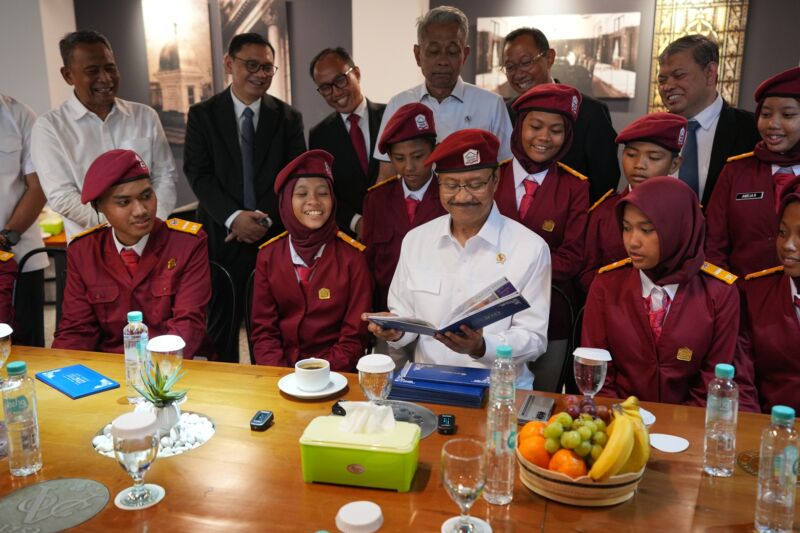 Menteri Sosial Republik Indonesia (Mensos RI), Saifullah Yusuf dampingi 200 siswa dari tiga Sekolah Rakyat di wilayah Jakarta, yaitu SRMA 10 Jakarta Selatan, SRMA 9 Jakarta Timur, dan SRMP 6 Bambu Apus Jakarta Timur melakukan kunjungan edukatif ke Museum Bank Indonesia di kawasan Kota Tua Jakarta, Selasa (28/10/2025). (Foto Bank Indonesia)
