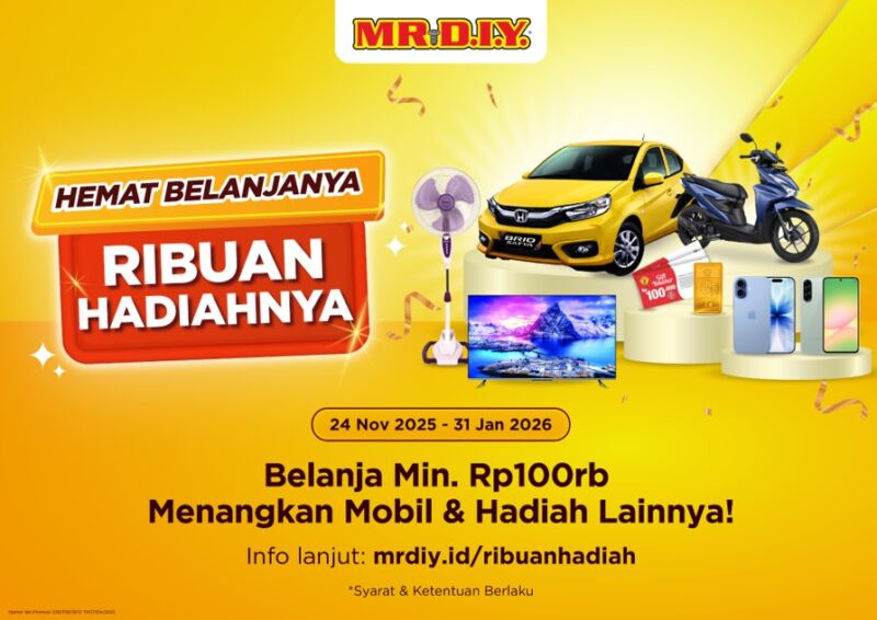 “Melalui program-program yang sedang berlangsung ini, MR.D.I.Y. memastikan pelanggan di seluruh Indonesia dapat menikmati harga yang lebih hemat dari sebelumnya, pilihan produk yang lengkap, serta peluang memenangkan berbagai hadiah, sebagai bagian dari pengalaman belanja bernilai yang kami hadirkan setiap hari.” tutup Ria.