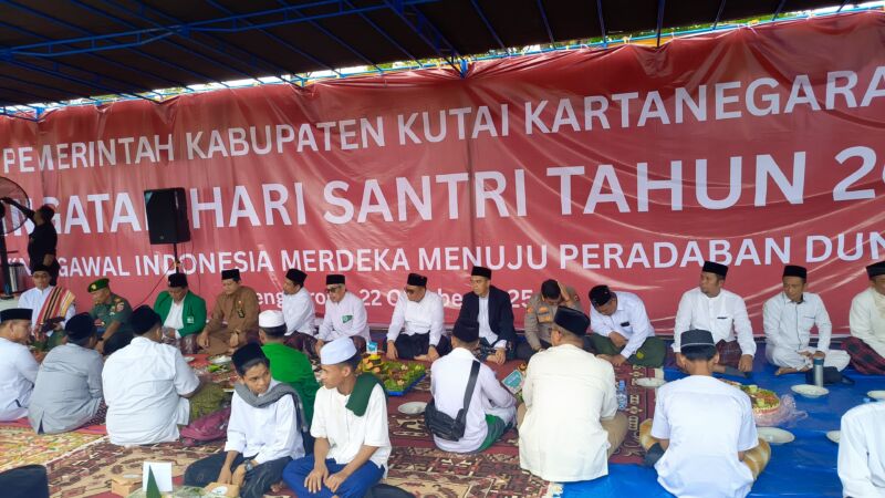 TENGGARONG.NIAGA.ASIA – Suasana penuh keceriaan mewarnai peringatan Hari Santri Nasional Tahun 2025 di Kutai Kartanegara (Kukar), Rabu (22/10). Ratusan santri dari berbagai pondok pesantren tampak antusias mengikuti rangkaian kegiatan yang digelar di kawasan Kantor Bupati Kukar, Tenggarong. Mulai dari upacara hingga acara beseprah, atau makan bersama di lapangan parkir Blok C.