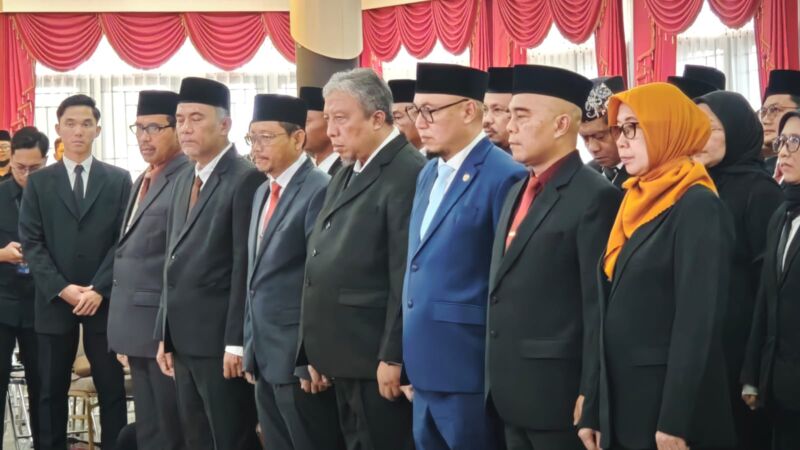 Rangkaian acara pelantikan diawali dengan pengambilan sumpah jabatan, dilanjutkan penandatanganan berita acara sumpah, serta pembacaan dan penandatanganan pakta integritas oleh seluruh pejabat yang baru saja dilantik sebagai bentuk komitmen terhadap integritas, profesionalitas, dan tanggung jawab dalam menjalankan amanah jabatan.