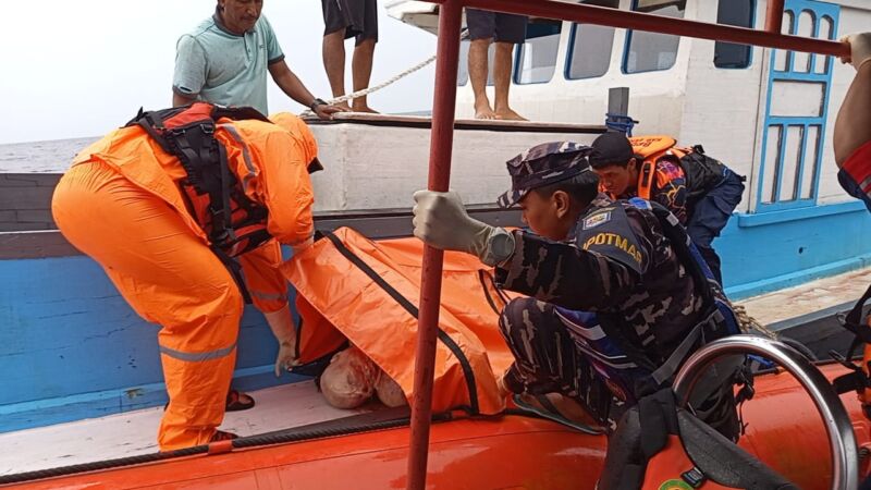 Operasi pencarian terhadap korban kecelakaan kapal KM. Mina Maritim 148 yang tenggelam di Perairan Talisayan, Kabupaten Berau, Kalimantan Timur, pada hari keempat, Rabu (29/10/2025) menemukan satu korban dalam kondisi meninggal.  (Foto Basarnas Balikpapan)