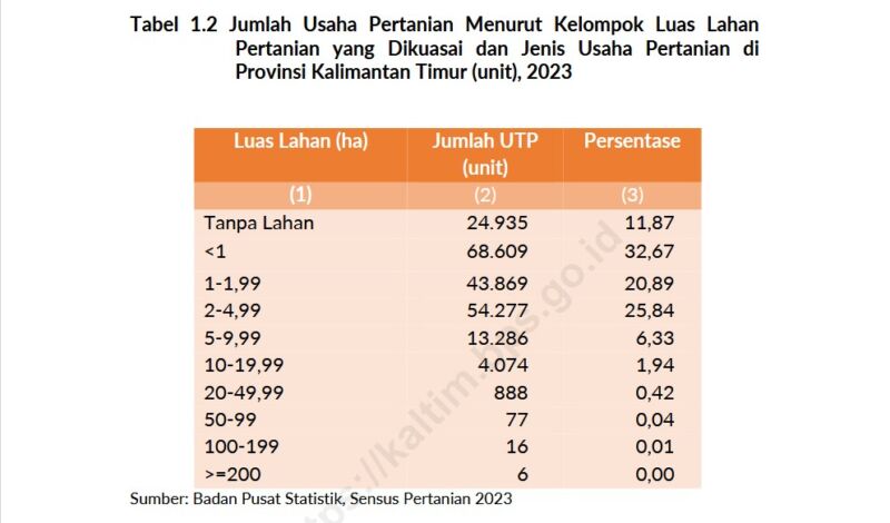 “Jika dilihat dari kepemilikan lahan pertanian yang dikuasai, sebanyak 32,67 persen petani di Kaltim memiliki luas lahan kurang dari 1 hektar (ha). Luas lahan pertanian kurang dari 1 hektar tersebut menunjukkan keterbatasan skala usaha tani yang berpotensi menekan pendapatan petani,” ungkap Yusniar lagi.