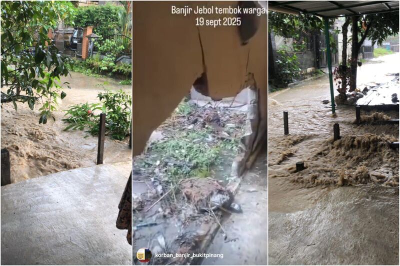 Beberapa foto banjir tanggal 19 September 2025 lalu. Bahkan, tembok luar belakang rumah warga RT 12 Bukit Pinang jebol diterjang banjir. (Niaga.Asia/Lydia Apriliani)