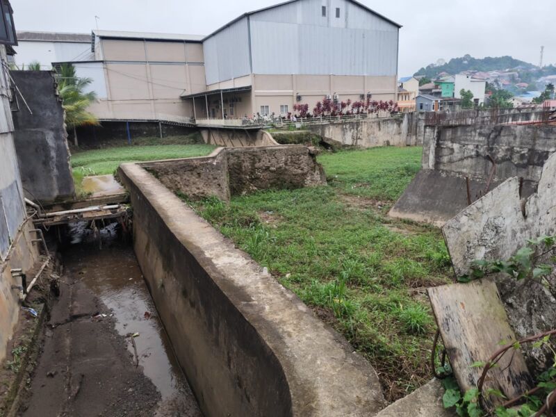 Kondisi saluran air di RT 12 Bukit Pinang yang kerap tak mampu menampung debit air. (Niaga.Asia/Lydia Apriliani)