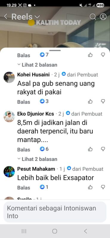 Total netizen yang berkomentar sampai 250 orang, lebih dari 95% berkomentar negatif atas pembelian mobil Lexsus yang jadi mbil termahal sepanjang sejarah gubernur Kaltim. Sisanya 5% netizen berkomentar sambil mengolok-olok sekda dan gubernur.