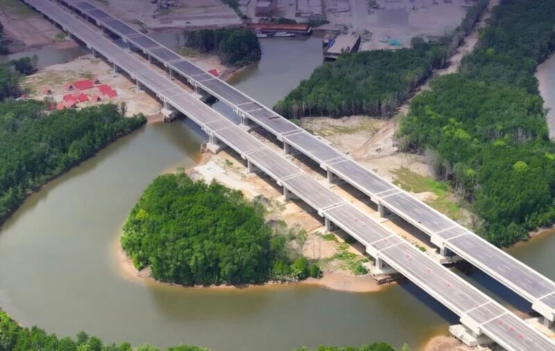 Selanjutnya, arus kendaraan diteruskan melalui Seksi 5A hingga Jembatan Pulau Balang, melintasi bentang panjang dan pendek, kemudian masuk ke Seksi 5B menuju Simpang Riko.