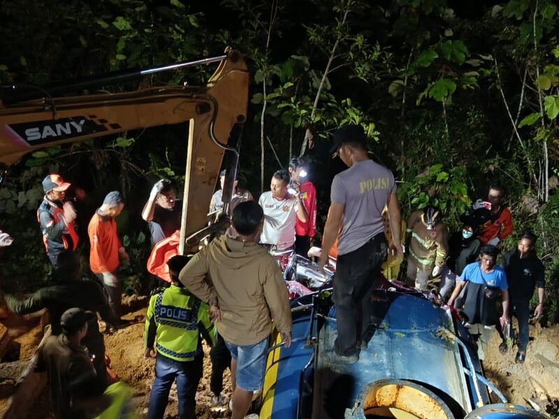“Truk dievakuasi menggunakan alat berat excavator sekitar pukul 22:24 Wita. Saat truk diangkat terlihat sopir terjepit dalam mobil dan kondisinya sudah meninggal dunia,” sebutnya